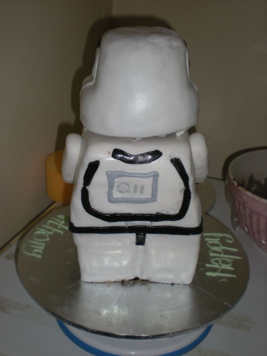 Lego Star Wars Stormtrooper cake made for my partners 40th birthday party. Gluten free chocolate cake, covered in fondant. It collapsed on one side when I was driving it to the party location but still very happy with the result.