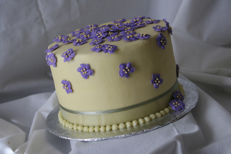 Made this cake just because. Wanted to see what I could do with a simple 6". BC with royal violets and fabris ribbon.