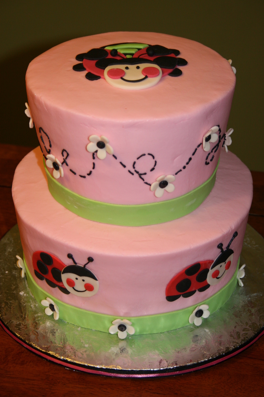 Buttercream with fondant accents. Vanilla cake with BC filling.