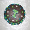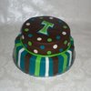 This cake was super fun because of the color combo! This was a birthday gift from a sweet lady to her guy. She loved another cake that I did for my girl cousin, but wanted to "man" it up a bit. Top: chocolate cake w/chocolate cream filling. Bottom: vanilla cake w/fresh strawberry filling. Stripes, Dots and Funky "T" are all fondant.