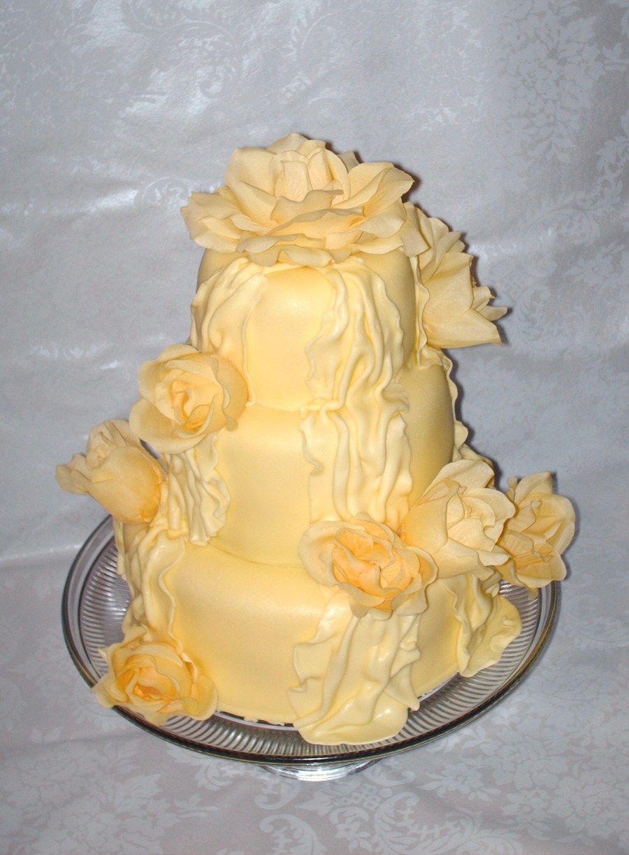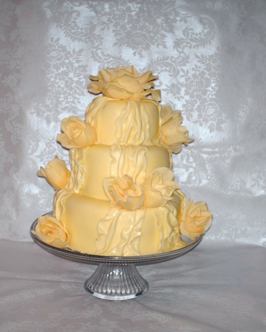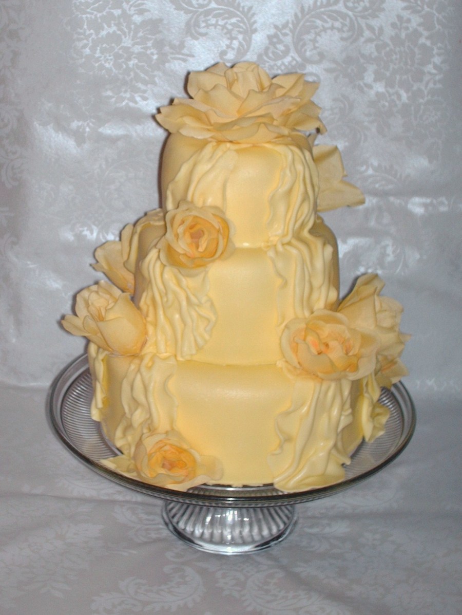 This cake was for my grandmother's 76th birthday. I've always wanted to get her a cake w/yellow roses when i was smaller. I never imagined I would be making it! :) She felt really special....which warms my heart. All tiers were Southern Butter Pecan cake w/French Vanilla frosting w/homemade praline pecans. It was so old fashionably yummy!! ...i wish i coulda made the flowers, but ran outta time. darn it!! anyways, i got really pretty cake design from the famous jennifermi! i love her cakes! :)