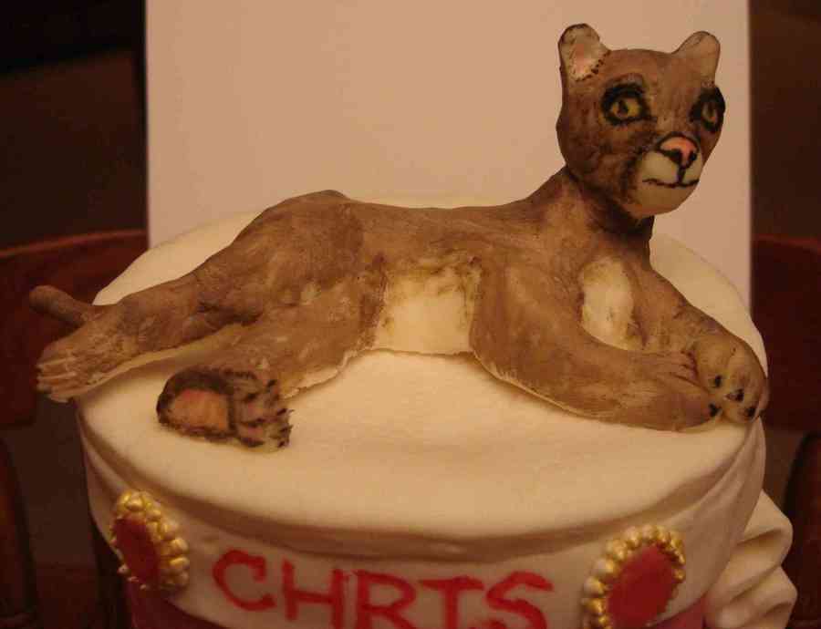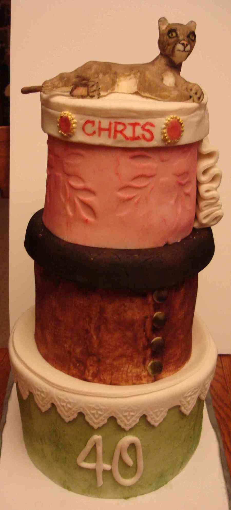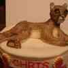 Special birthday for a self-proclaimed "cougar". Cougar is hand molded from chocolate. Cake for an interior designer so the layers were made to look like vintage hatboxes.
