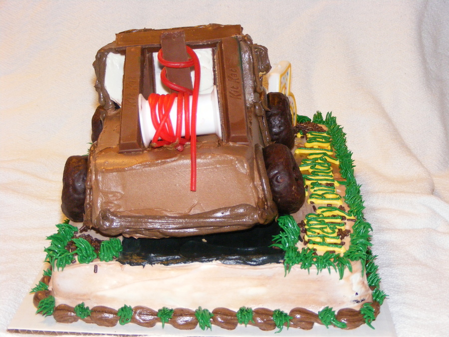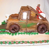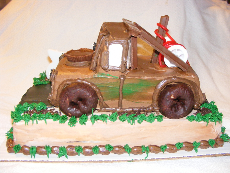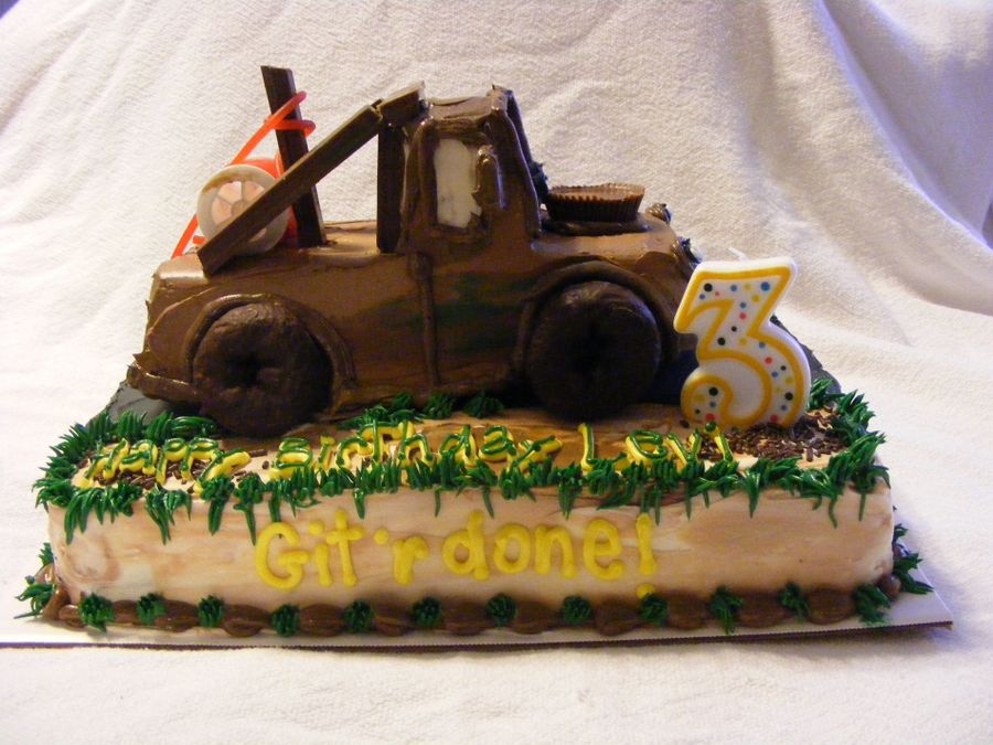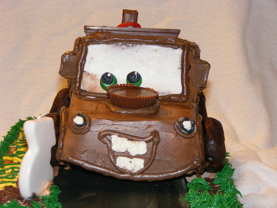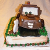 My 3 year old grandson called me and asked to me make him a "chocklit" cake---Mater---git'r done. This is what I came up with. All done in buttercream icing.