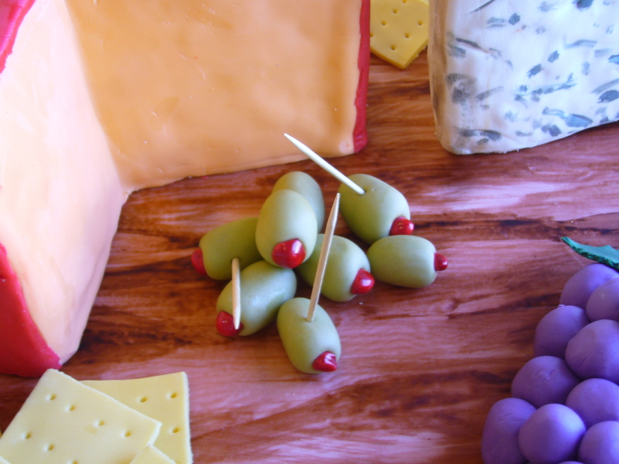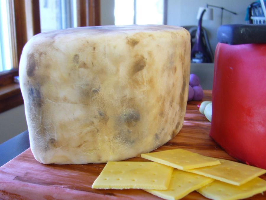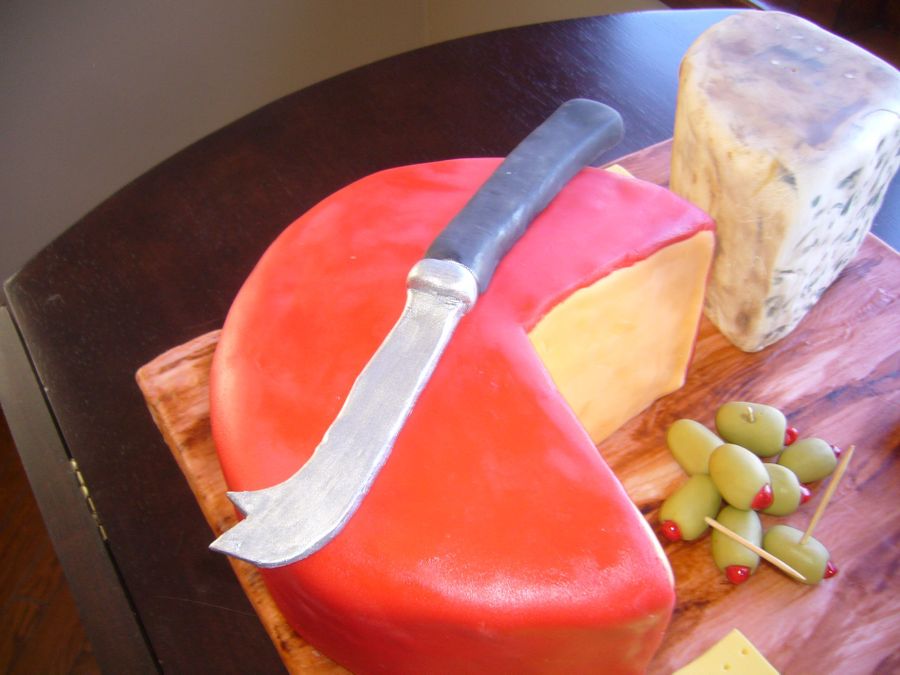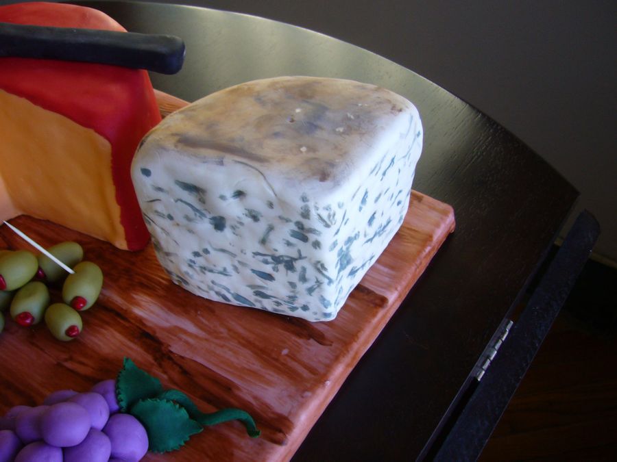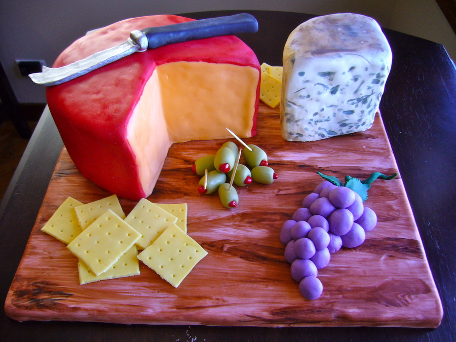Birthday cake for a friend who is a "foodie". Inspiration was taken from several of the cheese board cakes on Cake Central. The cheese is cake and everything else is fondant.