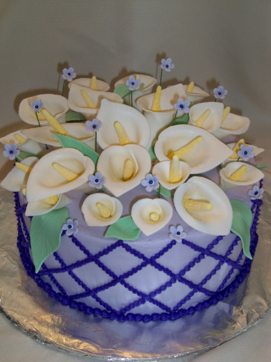Coconut cake filled with blueberries and frosted with coconut buttercream. Flowers are fondant & GP blend. Thanks for looking!