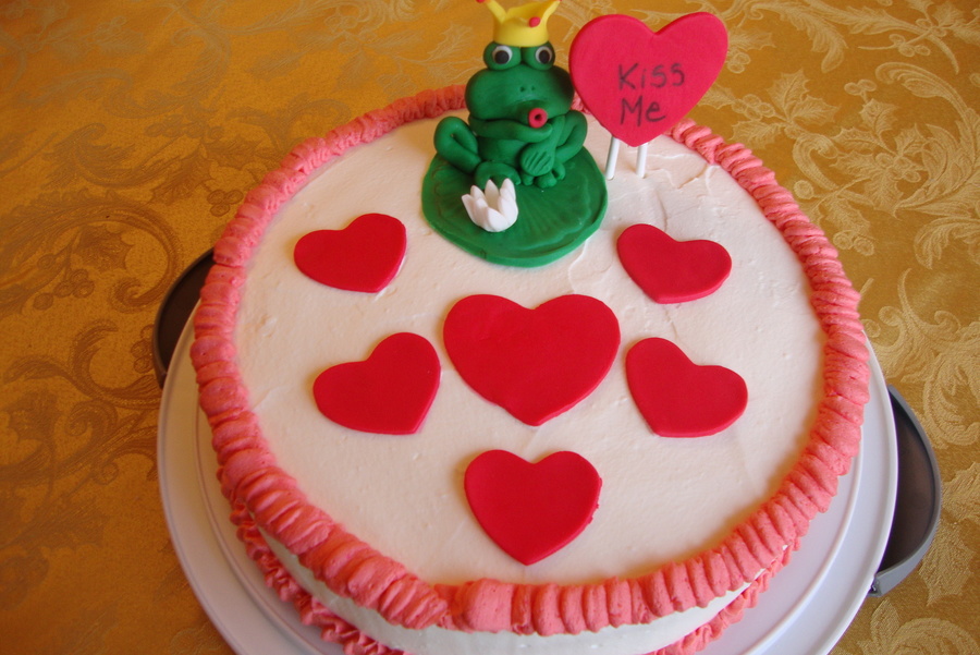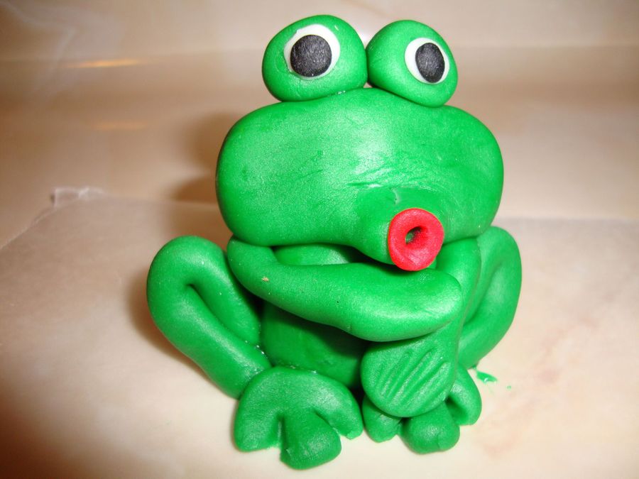 This cake is made of whipped icing, yellow cake. I made the frog out of fondant. Thanks for watching.