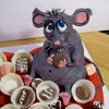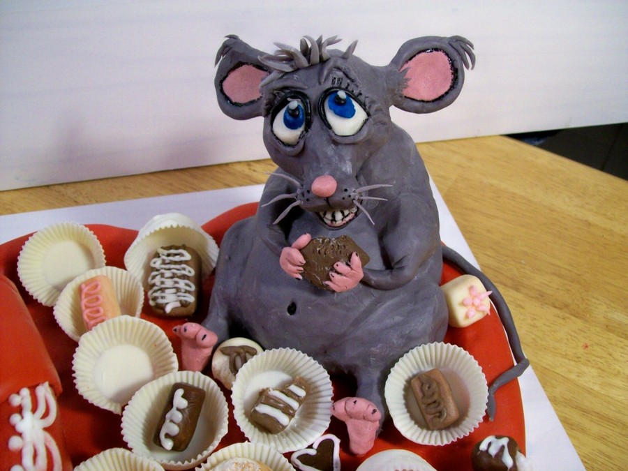 Vanilla butter cake with Lemon cream icing covered in marshmallow fondant. All decorations are hand made from gum paste, modeling chocolate and fondant and are all edible. Including candy, candy papers, roses and mouse.