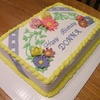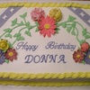 Cake is a white 1/4 sheet with BC. Ribbon is fondant. Some of the flowers are made of gum paste and others are fondant and RI.