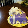 I made this for my grandma, she had people coming to town. its a fondant cake with a bow and some daisy.