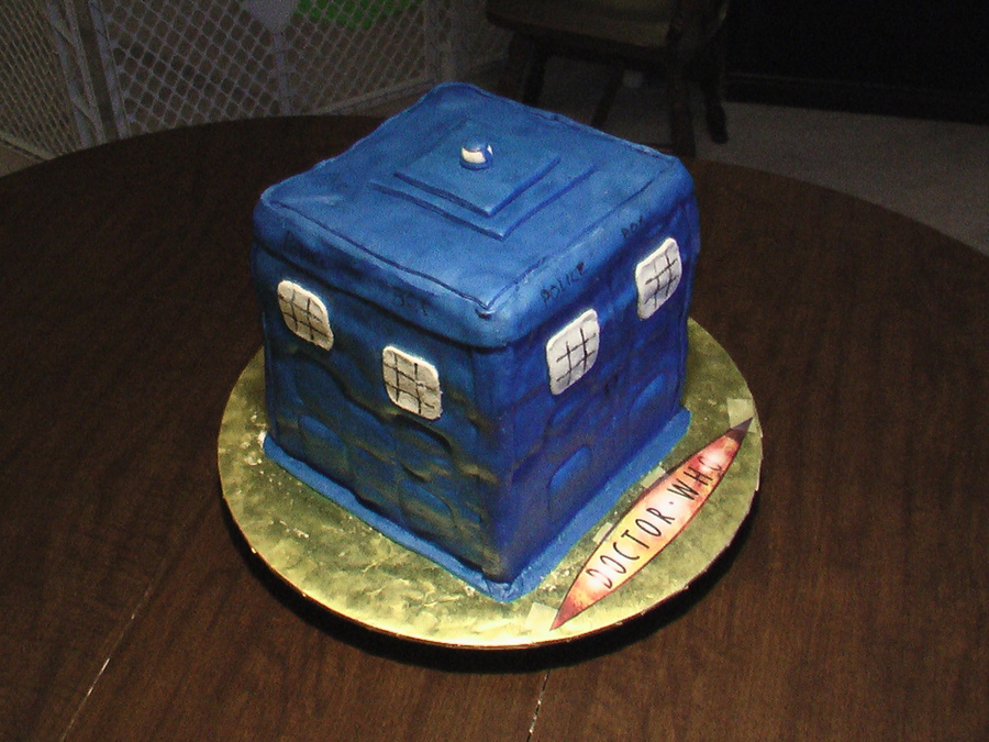 For Doctor Who fans, this was a 3D cake of the Tardis! I used MMF, colored blue and painted with blue dust & clear vanilla.