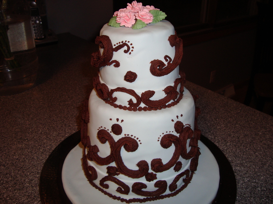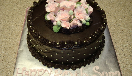 My attempt at practicing piping on my own birthday cake. Piping with regular ganache was not so successful. Lesson learned.
