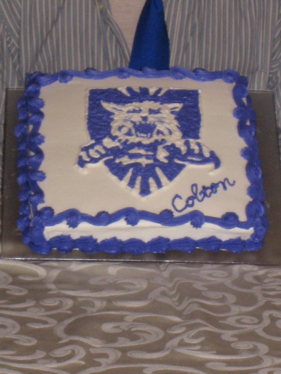 This is my son's 19th birthday cake. He asked for his school mascot on his cake. It is hand drawn in buttercream. The actual color was very purple, but the photos didn't pick up the color well.
