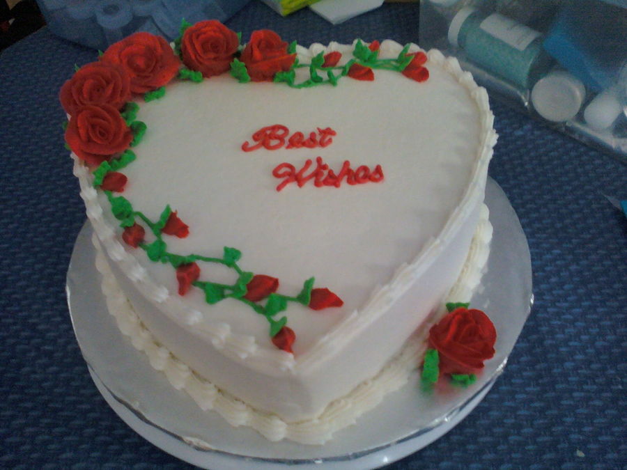 WASC with strawberry filling. All buttercream. I made this cake for my church couples Valentines Dinner! TFL