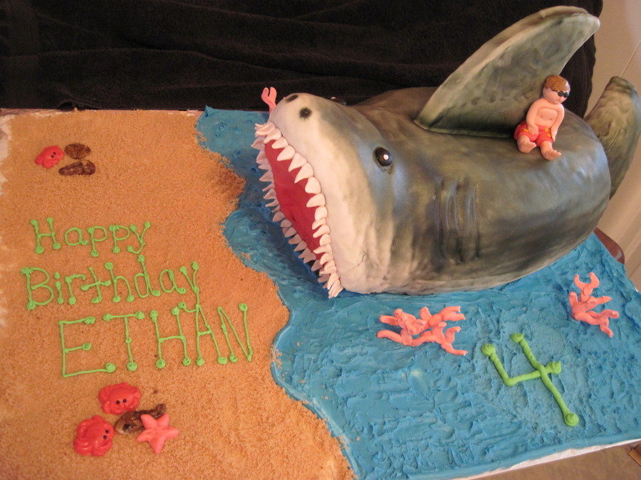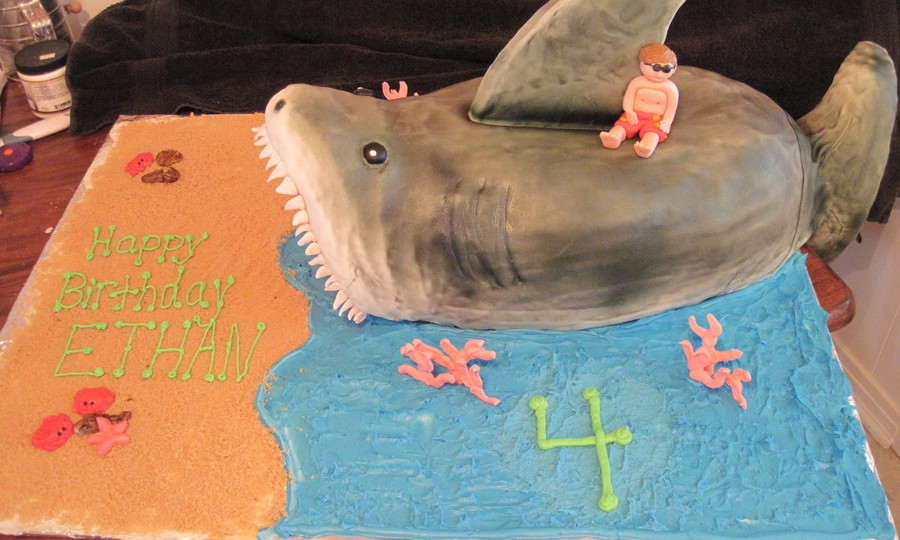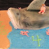 2 carved full sheet cakes RKT head and tail. Over 2 feet long and weighs 40 lbs. My nephew loves the beach so I made a mini him to ride on top=)