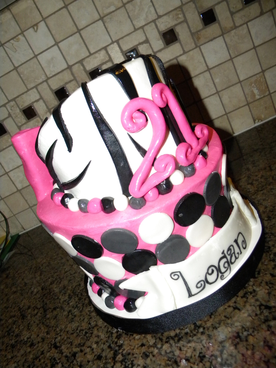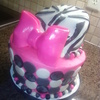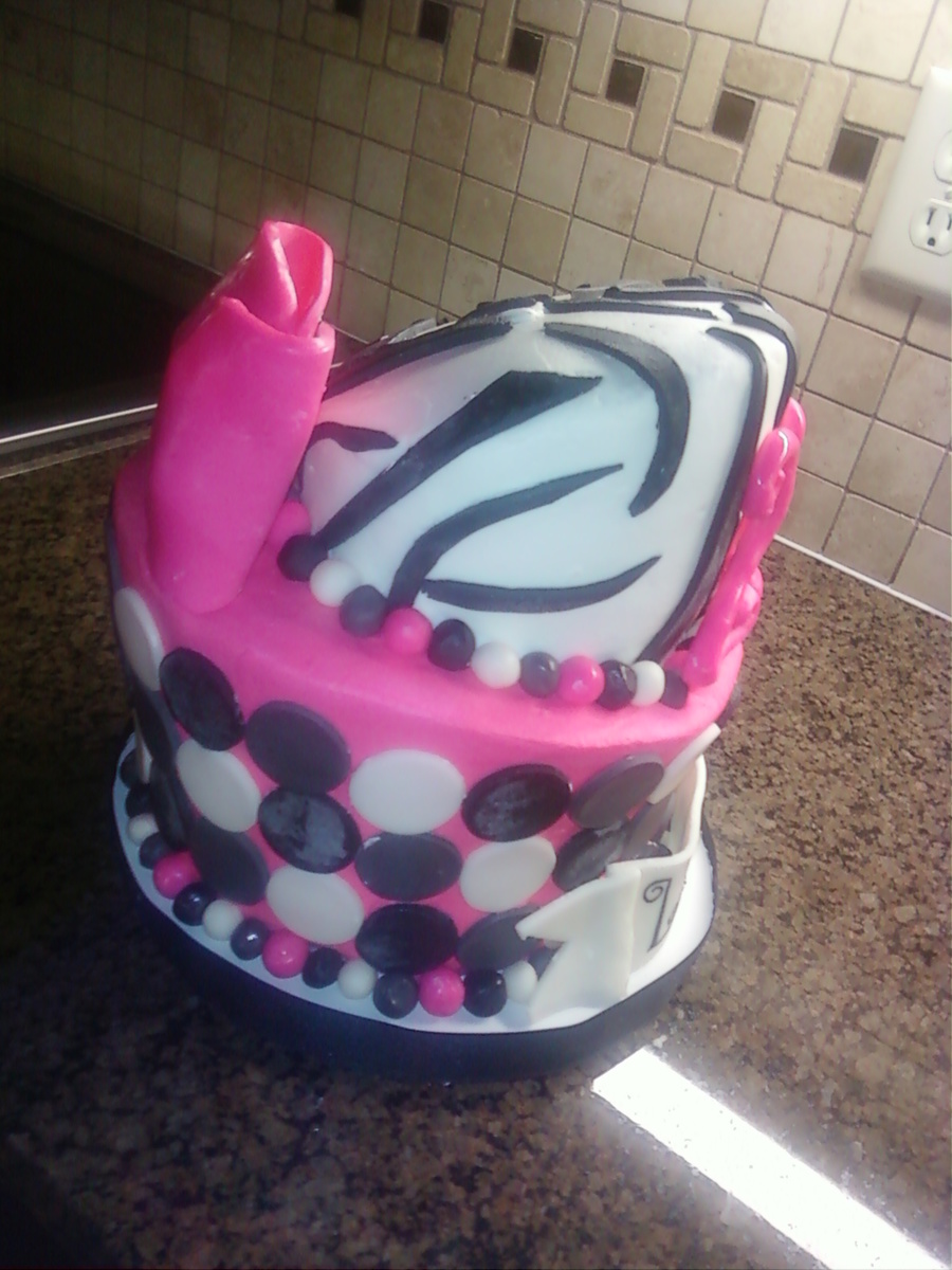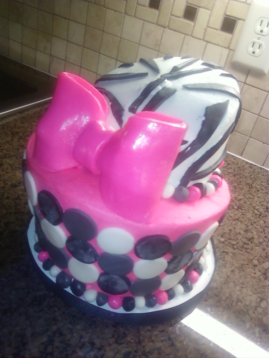 This was inspired by pink cake box. The customer was extremely happy considering her first baker told her she could not do the fondant work 2 days before pick up. Luckely, I was able to accommidate. I now think I have a customer for life!!