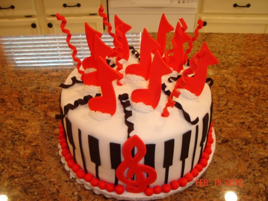 This cake was made for a music-loving birthday girl. Chocolate cream cake. All fondant accents.