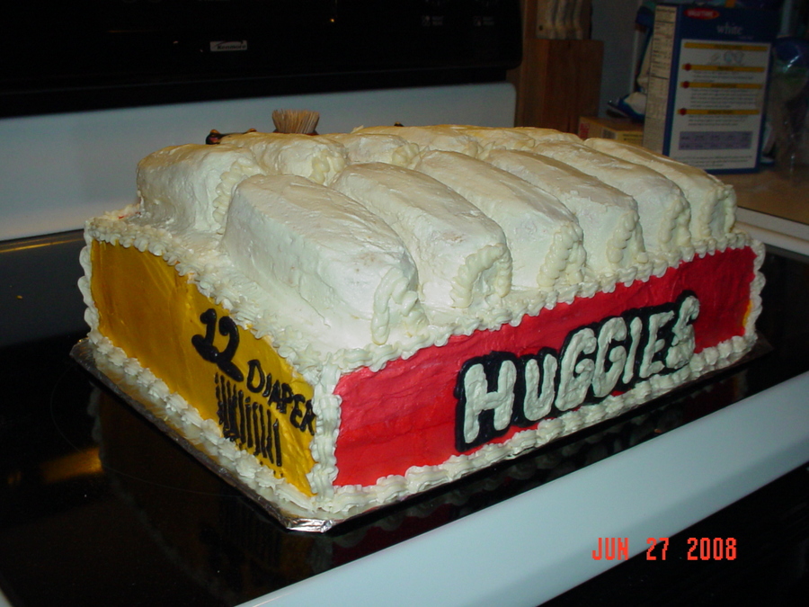 btm is 2 sheet cakes and the diapers are twinkies covered in fondant and piped ruffles on the sides.