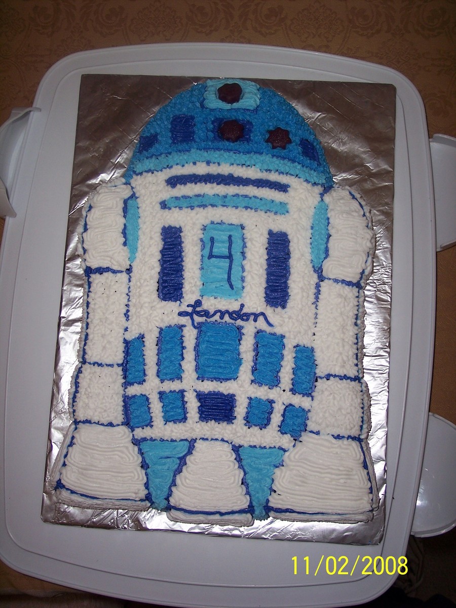 Star Wars R2D2. Used the traditional colors for this one. Now a days, he is green black, yellow and no telling what else.