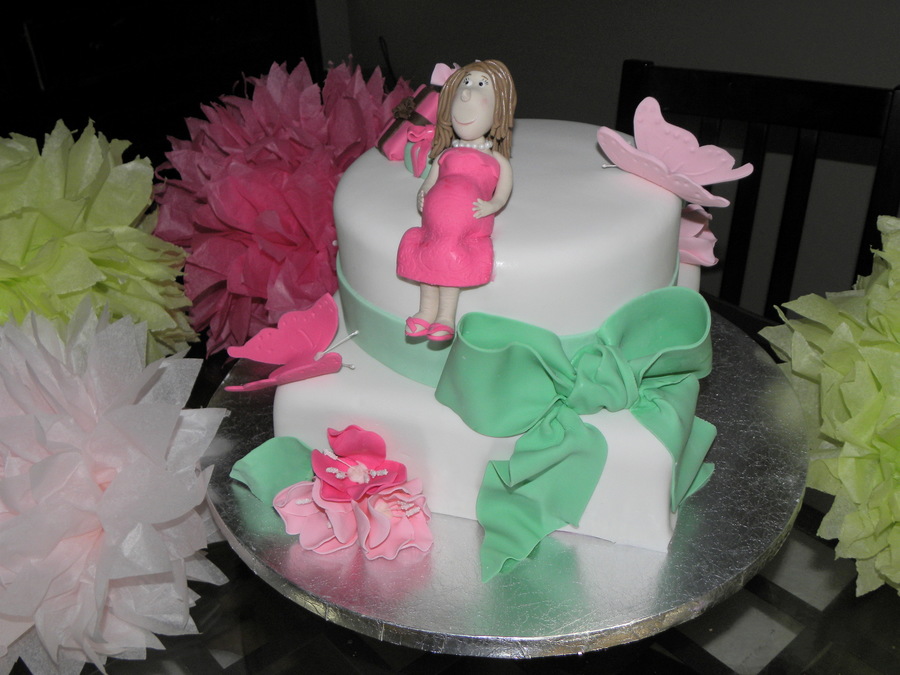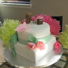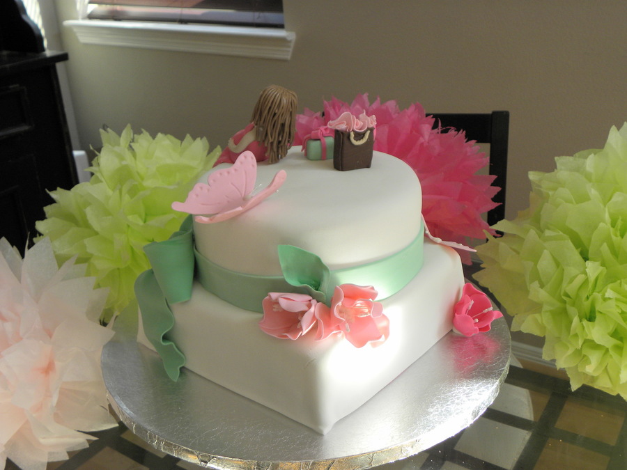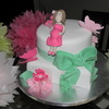 Fondant covered triple chocolate fudge cake an WASC. All decorations are gumpaste. This was my first attempt on gumpaste flowers. I need some practice on making figurines. She sat up straight until I added hair :( I guess it was just a little too heavy.