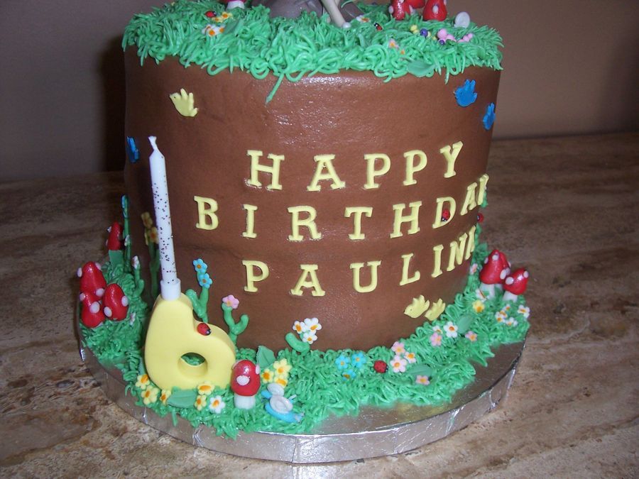 Yellow cake with chocolate frosting. All decorations made from sugar paste for a dear friend daughters 6th birthday. Thanks for looking.
