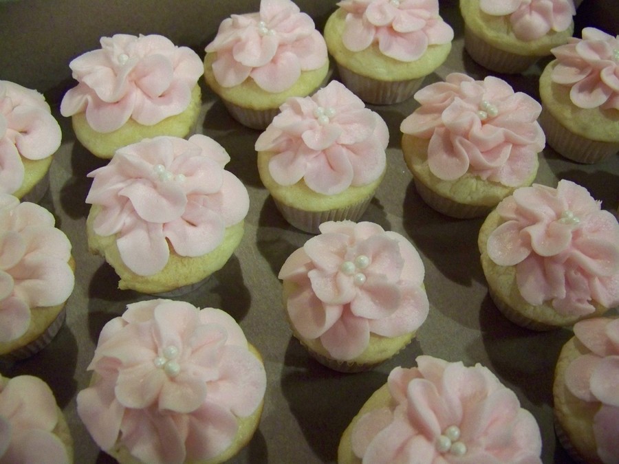 My Grandma requested some mini cupcakes to bring to her Sunday tea time after Church...WASC with SS pink icing..with edible sugar pearls. Quick and Easy!