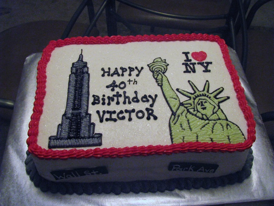 My friend was surprising her hubby with a trip to NY for his 4oth birthday and wanted the cake to represent the surprise gift
