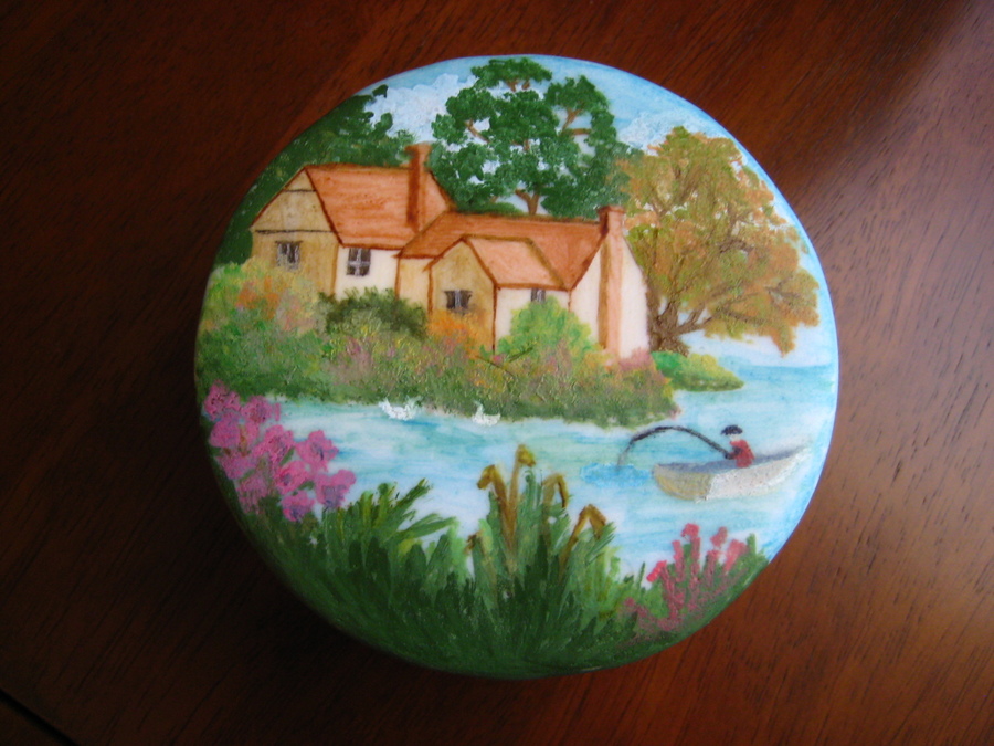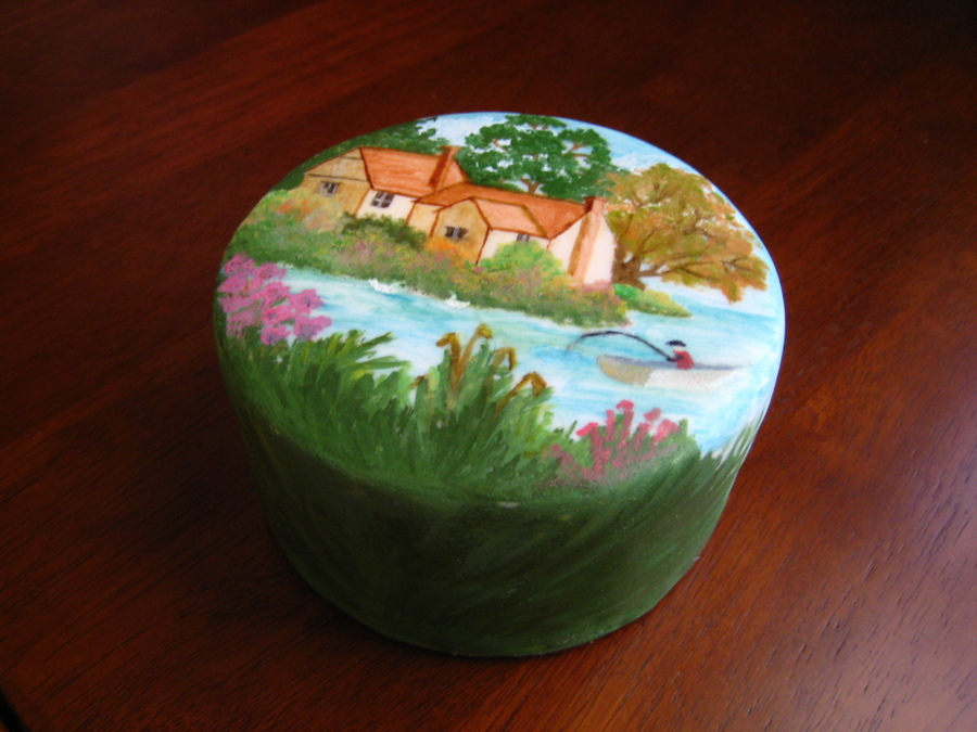This is a handpainted mini 4" round fruitcake i made! It is freehand painted with gel colours diltued with vodka and also mixed with americolor bright white and is from an image of an oil painting i found. Had fun doing it and am pretty happy with how it turned out :) Thanks for looking!