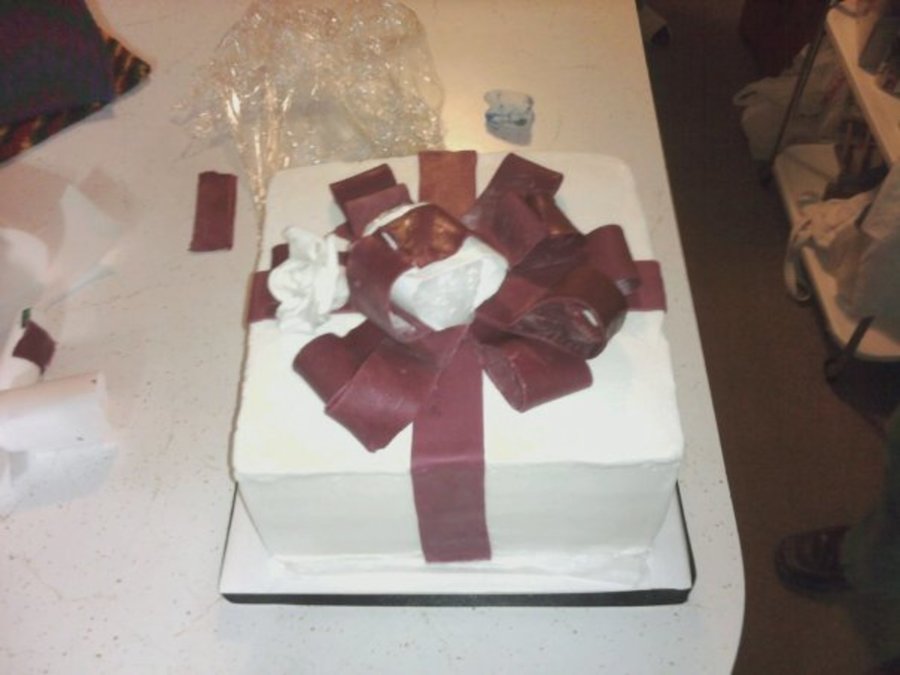 Buttercream with fondant accents. Couldn't seem to get the bow dry enough. Grrr!