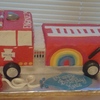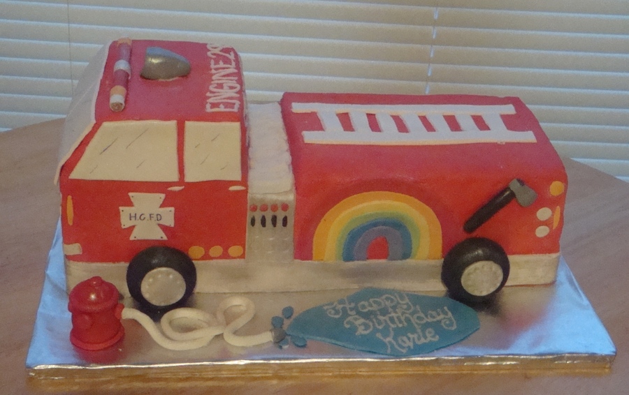 For Karey, who is a part-time fire fighter, her friends thought a fire truck and a little something to show her lifestyle would be perfect. It was vanilla cake with almond buttercream and fondant accents. She loved it! TFL!