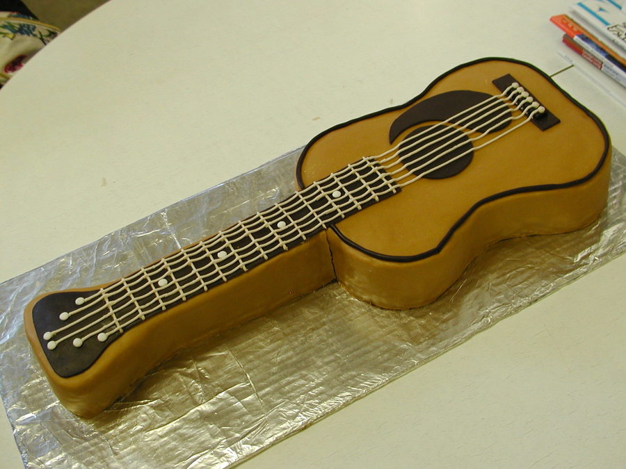 Cake I made for a co-worker who plays guitar. My first carved cake. I am still very new at cake decorating but really enjoyed making this one. Chocolate cake with chocolate buttercream and a cinnamon spread filling.
