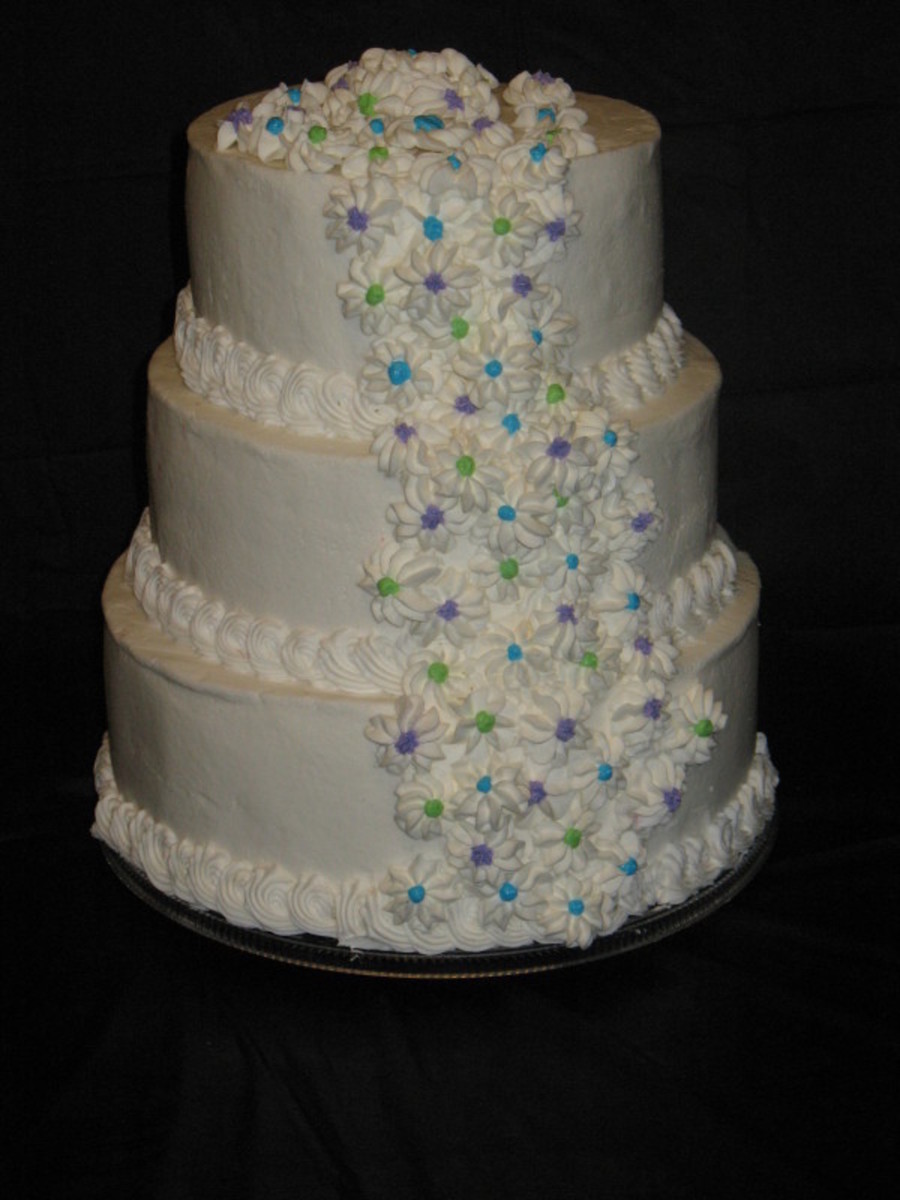 Dummy Cake iced in BC. Royal Icing Drop flower cascade. I don't remember the drop flower tip, it's been a while.