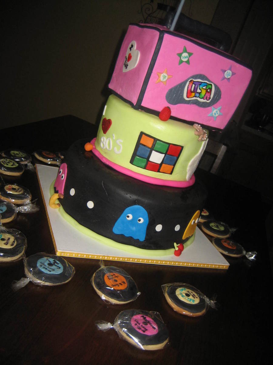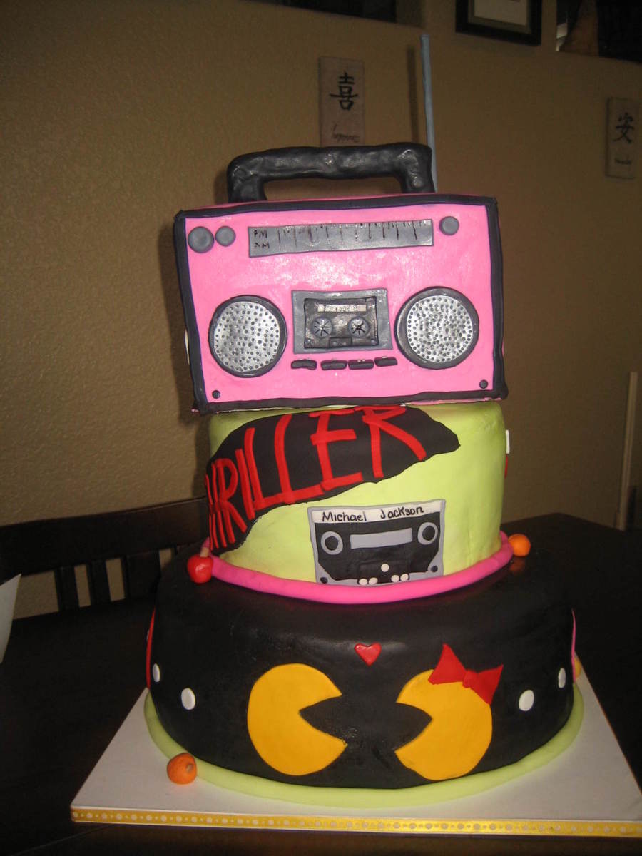 micheal jacksons glove covered in disco glitter all accents cherries etc.. gumpaste boombox made of rc covered in mmf