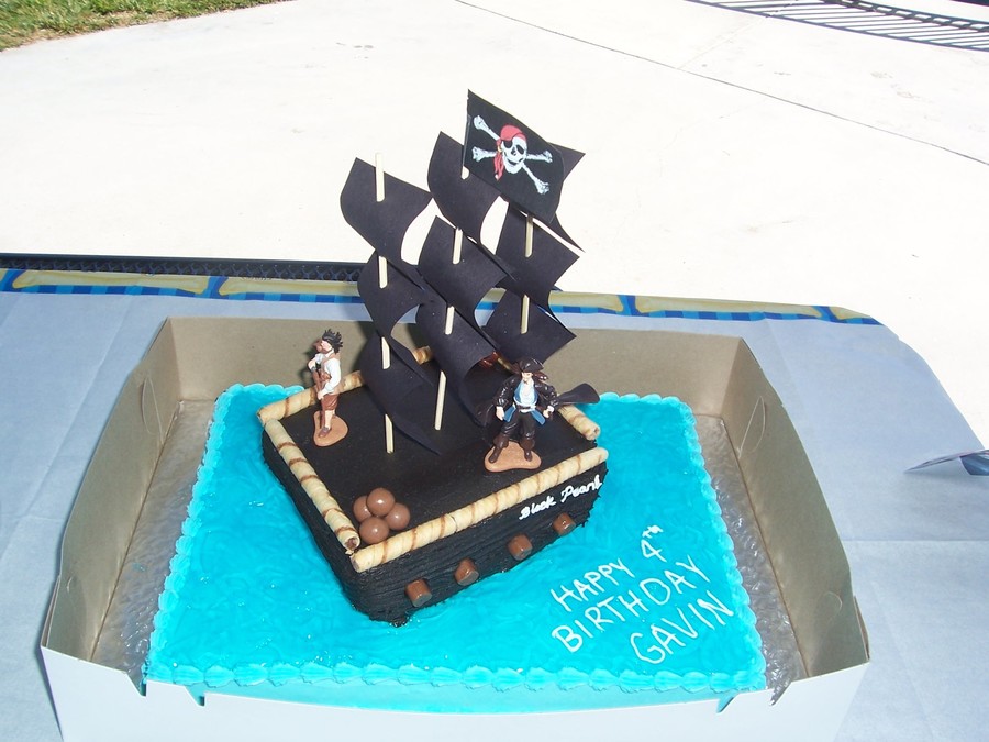 Made this pirate cake for a little boy. The sails are bamboo shish-ka-bob sticks with paper, but the rest was edible.
