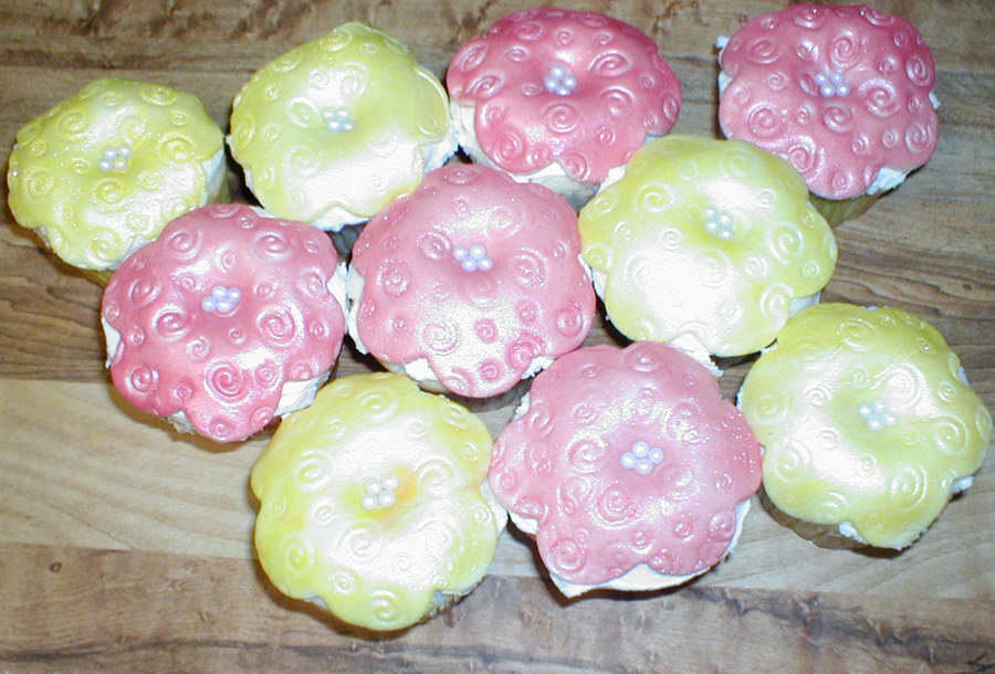 Flowers are fondant, covered in luster dust with sugar bead middles