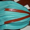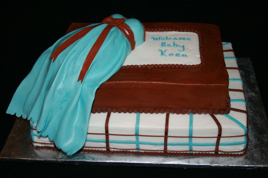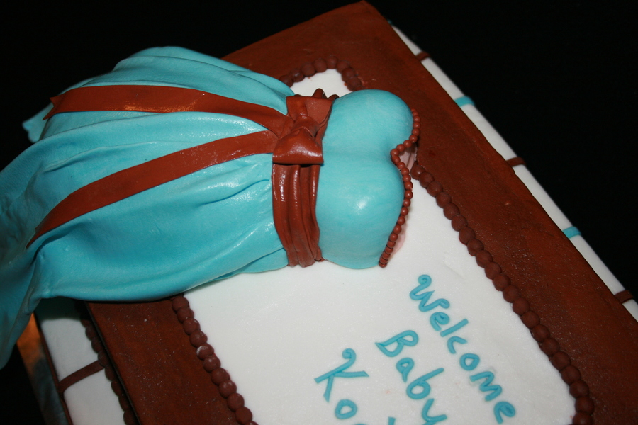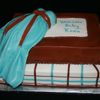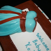 Two filled sheet cakes iced in buttercream with gumpaste accents. Bust is RKTs covered in gumpaste