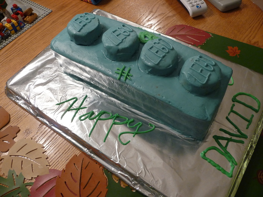 White sponge frosted with cream cheese frosting. This is the ONLY Lego that is OK for a child to put in their mouth!