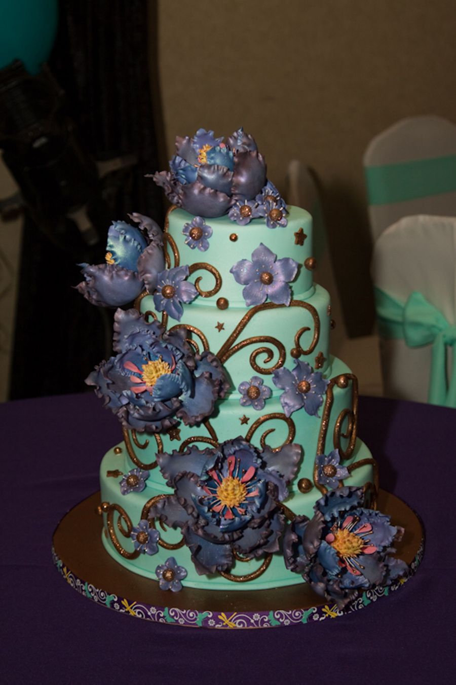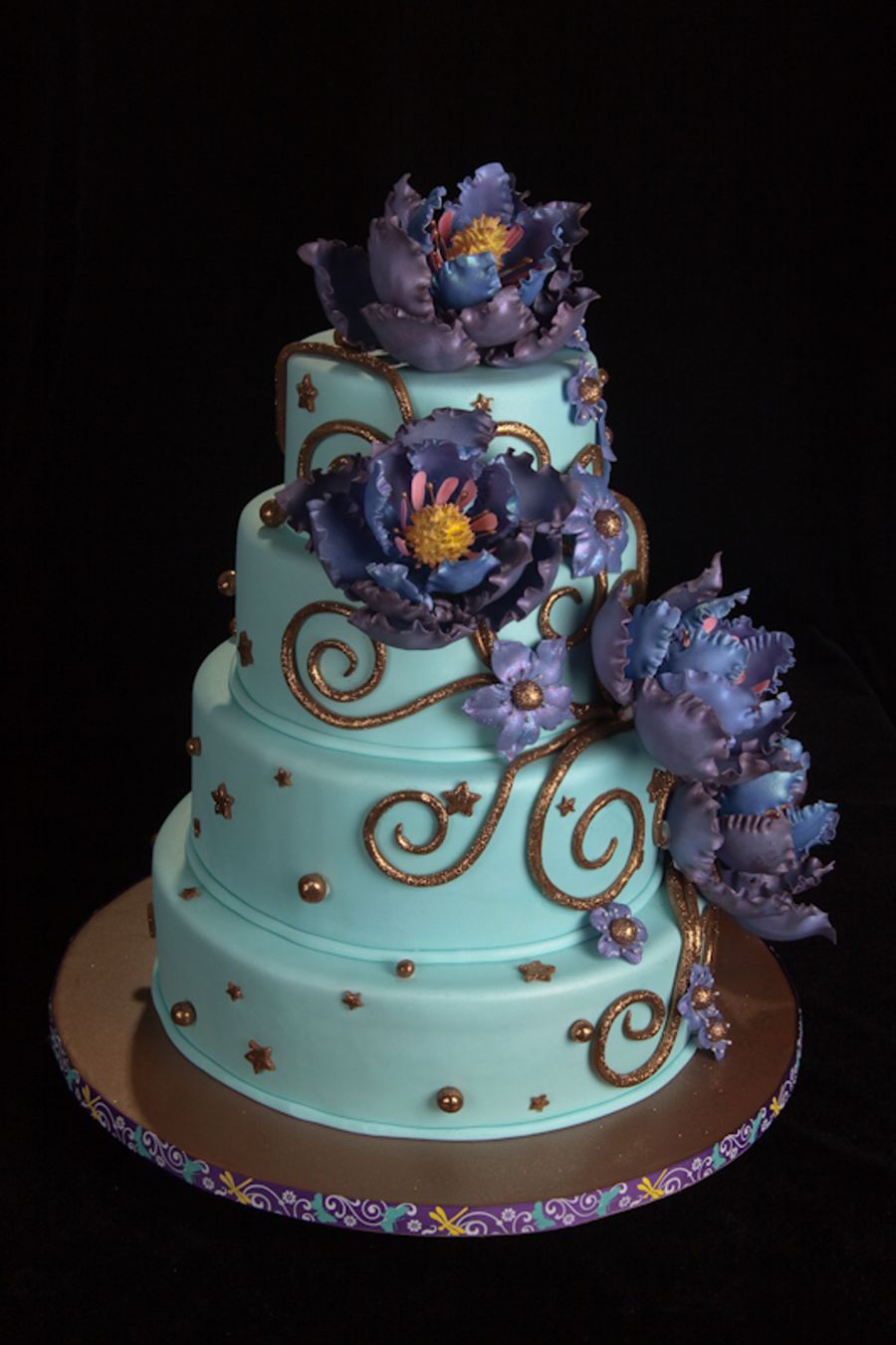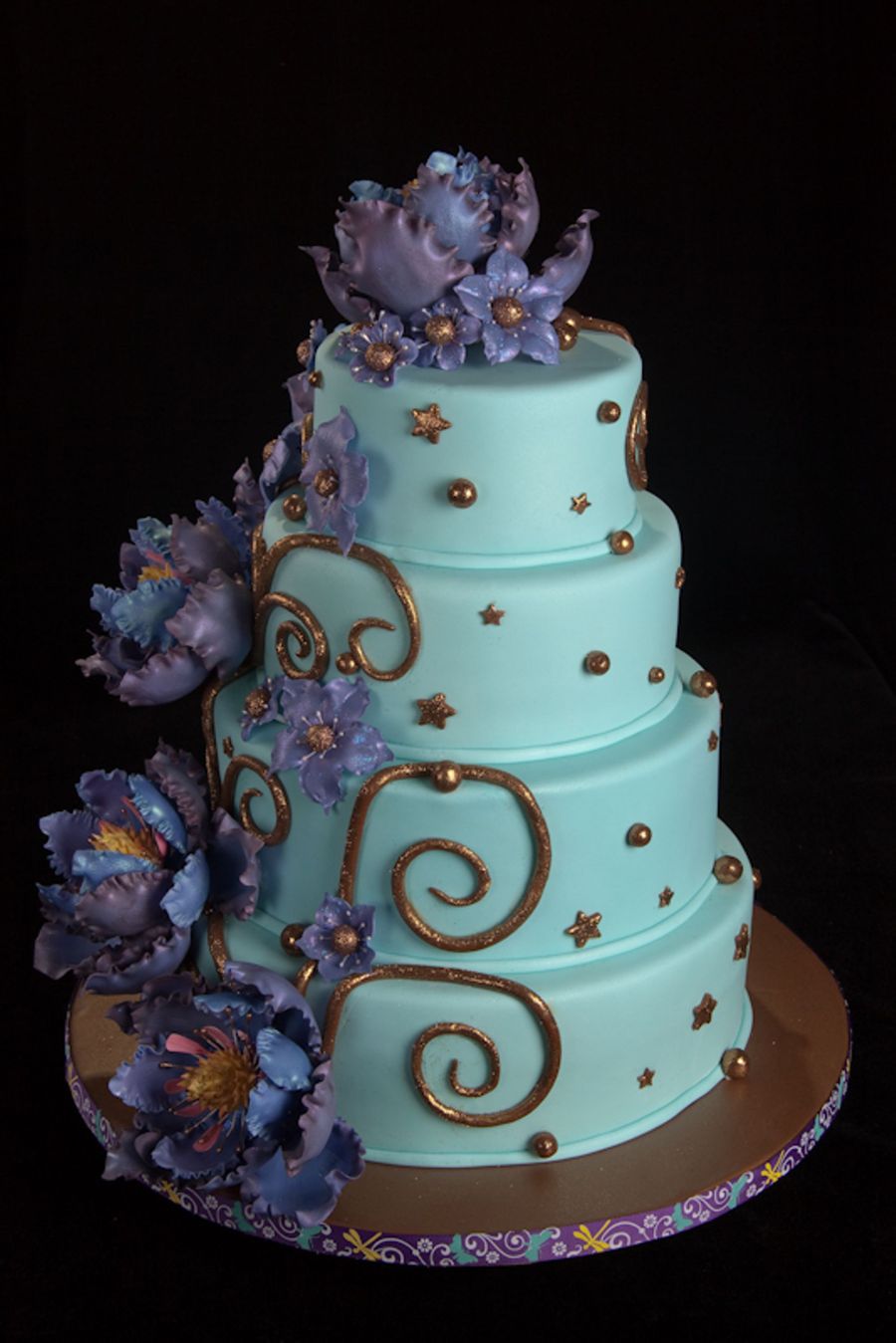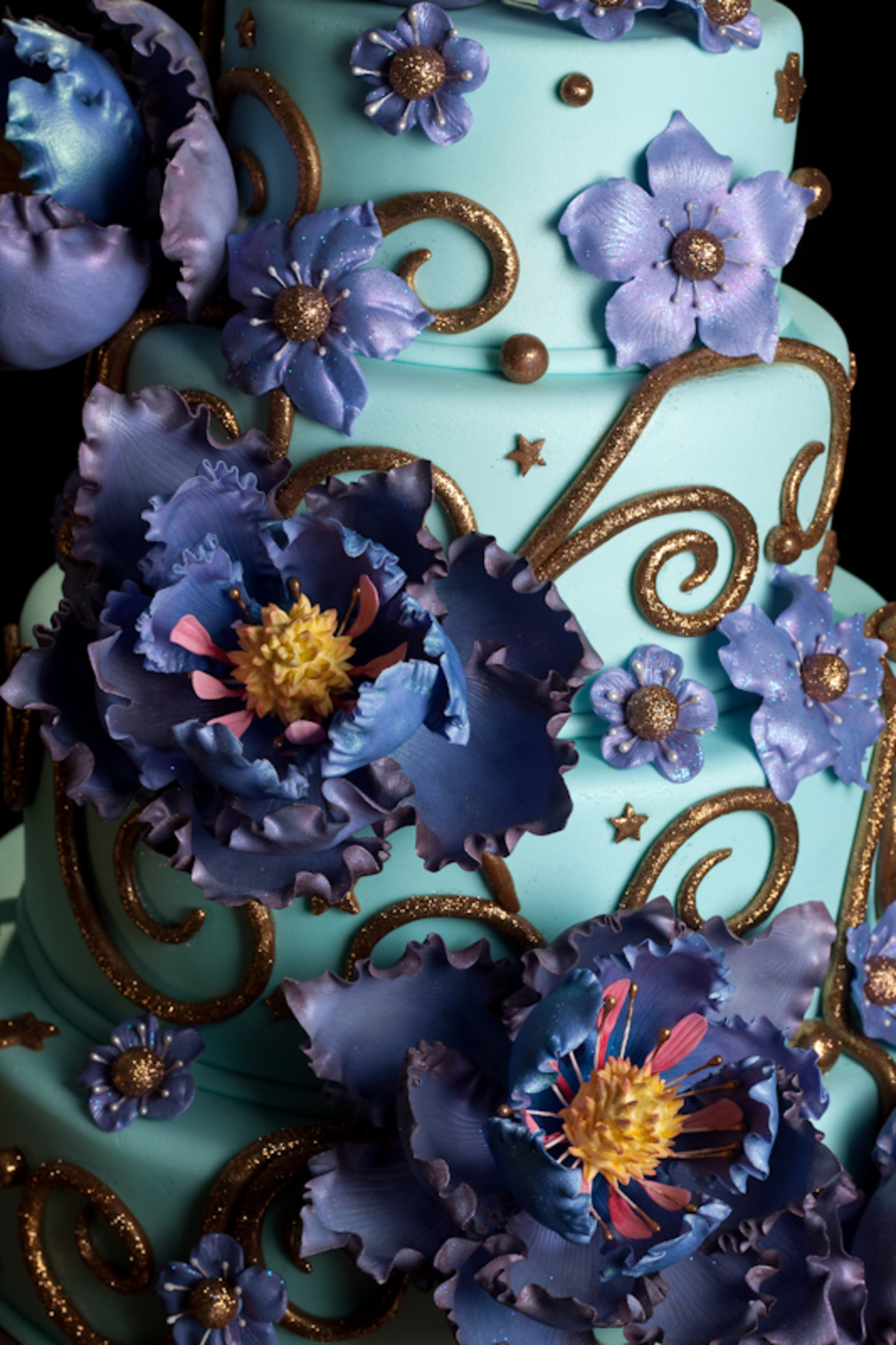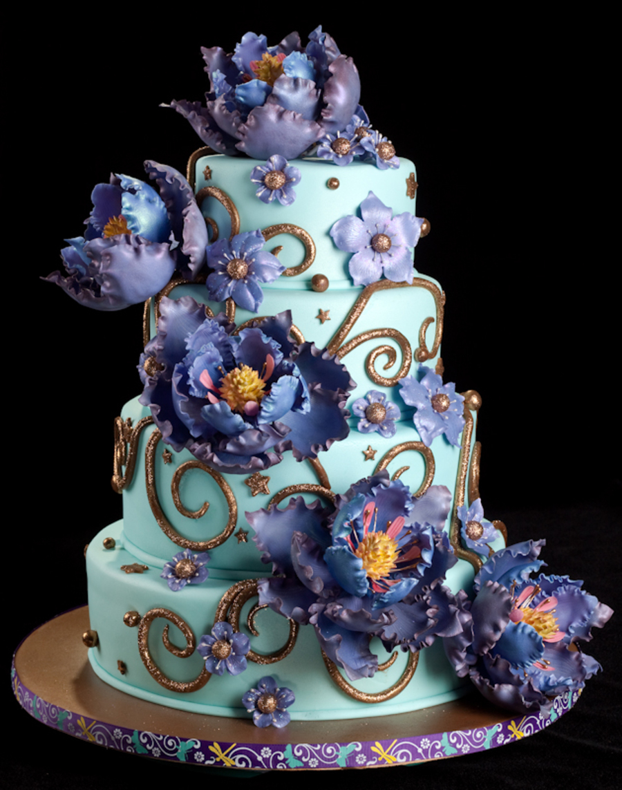 All flowers are made from gumpaste, everything else is fondant. Cake is mix of chocolate and yellow layers. Those flowers took me just about 40-50 hours to make, but so all worse it!!!