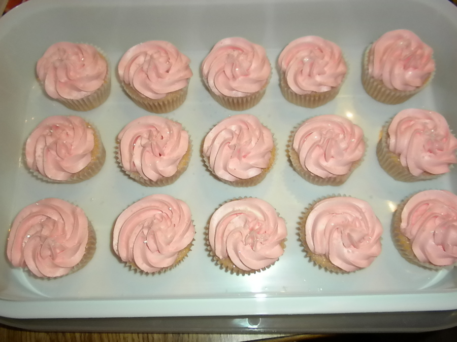 Lemon Sponge Cake w/ Raspberry filling & Raspberry BC Icing. Trying out some new flavor combos for an upcoming shower. Will make the icing white for the actual shower. Other pictures are of strawberry cupcakes w/ banana filling and strawberry bc icing. Thanks for looking!
