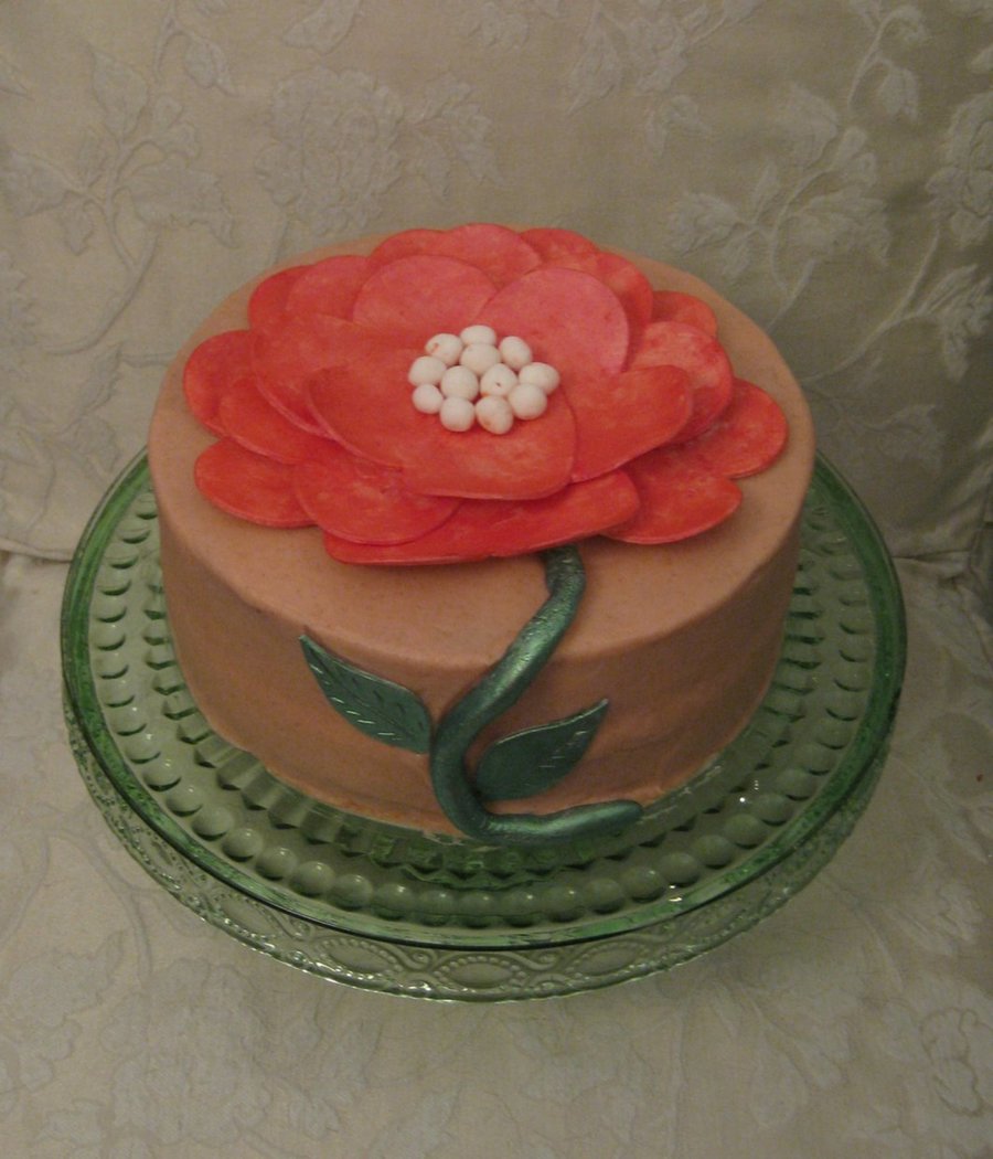 This was for my mom's birthday. Sugar and spice cake with cinnamon buttercream. Flower made out of gumpaste hearts painted with Lusterdust.