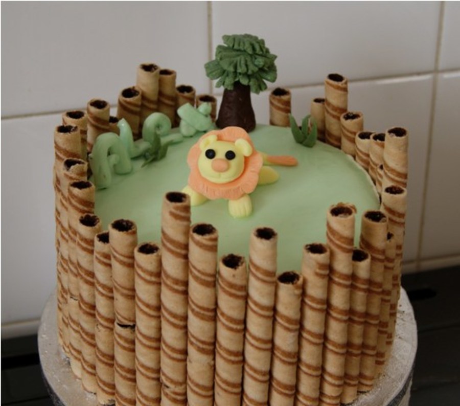 This is a sponge cake with almond buttercream and strawberry jam for my 9 year old son who wants to be a lion zoo keeper when he is older!