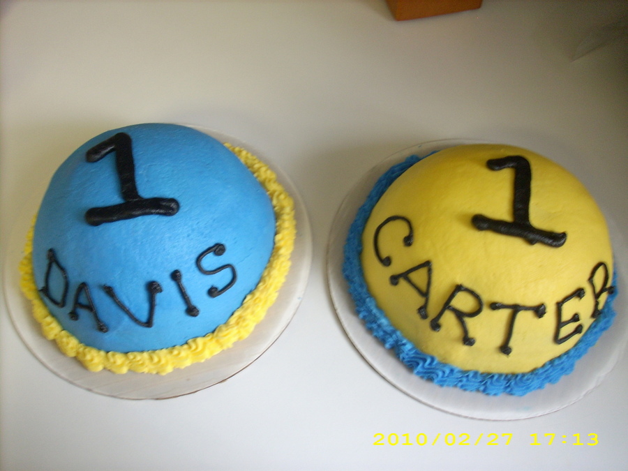 This is an idea I got from someone else on CC...Thanks! Chocolate cake with cookies n cream filling. For a first birthday party for twins. Mama wanted balls. Smash cakes are pictured below.