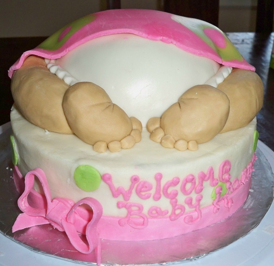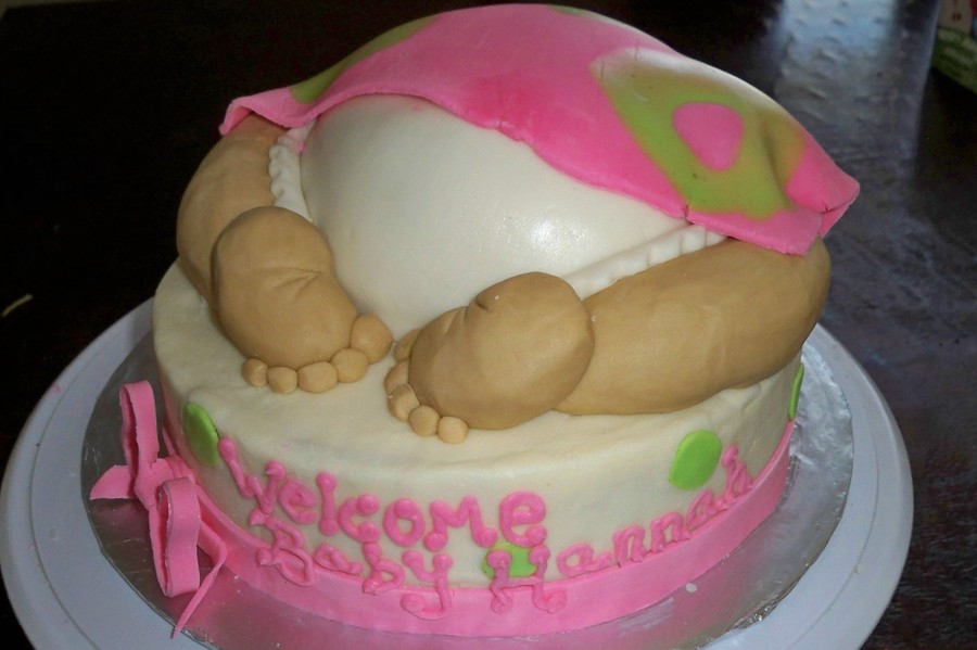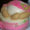 Marble Cake 8" 2 layer on bottom. The "butt" was baked in a small Pyrex bowl. Icing is Buttercream. The blanket is Fondant. The diaper, legs, and feet are rolled buttercream. This was my first attempt at this kind of cake. I think it turned out good!!
