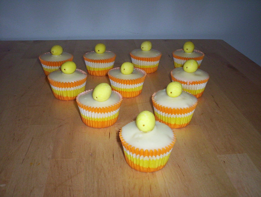 Lemon yogurt cupcakes with white chocolate lemon yogurt ganache. Lemon shaped gumpaste.