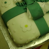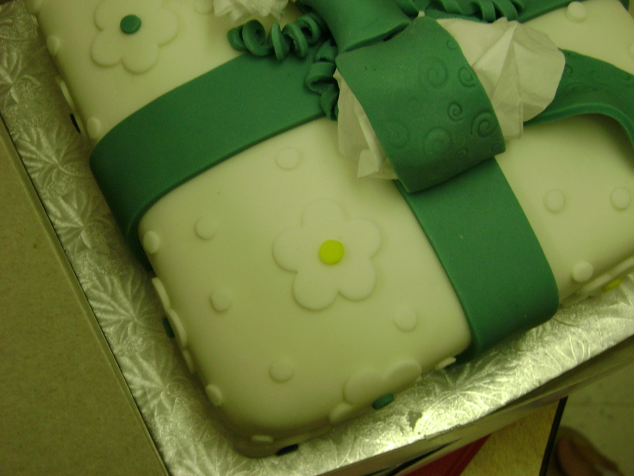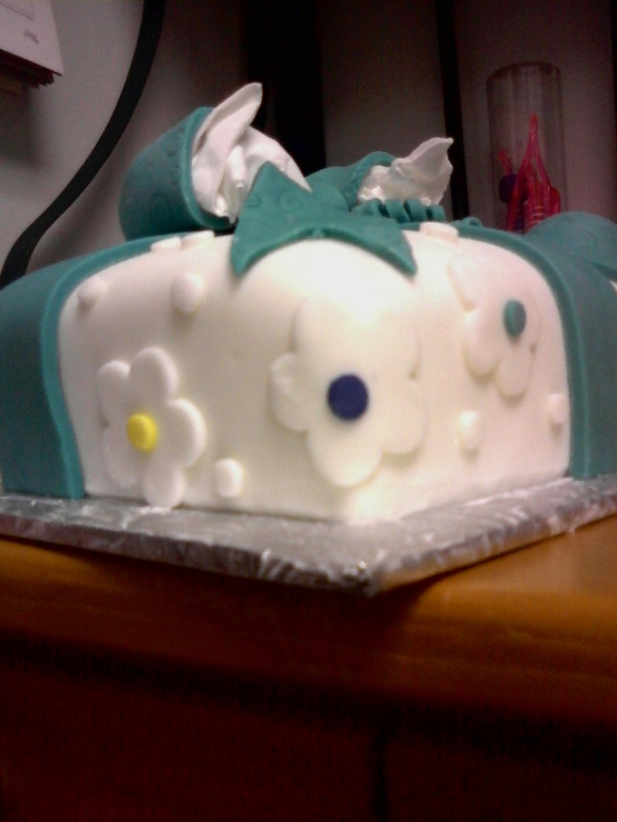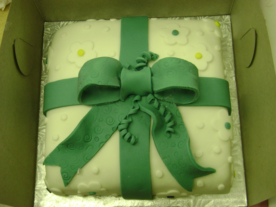 This is a spiced cake, with a cream cheese filling / dirty ice. Covered in vanilla fondant.