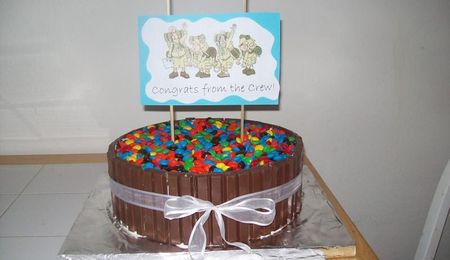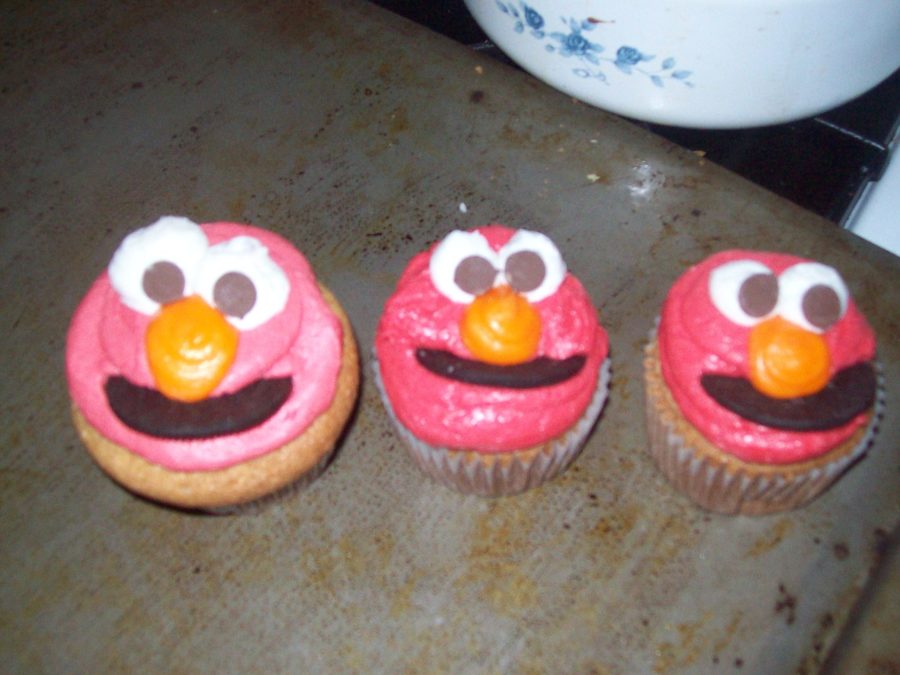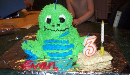 Yellow cake with oreo's without the filling for a smile, and milk chocolate chips as eyes. TFL