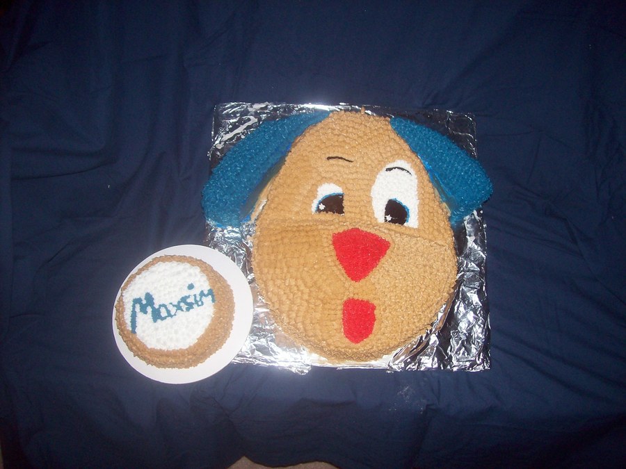 This is a cake version of a toy dog. Shaped using a 14 in round and cutting around. It was BIG!