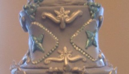 Thank you very much. First i cut the cake 3 layers filled with cream and let it chill, then i crumb coat it, let it chill and believe it or not i did smooth the icing by hands(no tools just fingers) the spatula drove me crazy.Putting the fondant on was the best i almost pulled my hair out, i even came to this site see if i can get some help because it doesn't spring back i was stuck with exess fondant that's where the half circles at the bottom came in handy.I used wilton decorating stamps for the scrolls