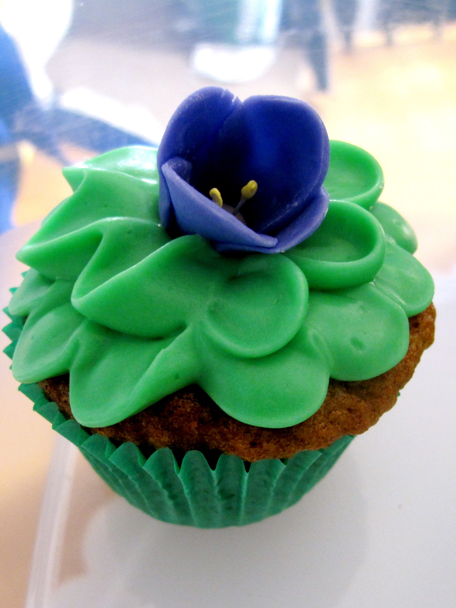 Carrot cake with cream cheese and fondant flower. It was supposed to be a tulip...but I am not sure it actually looks like one