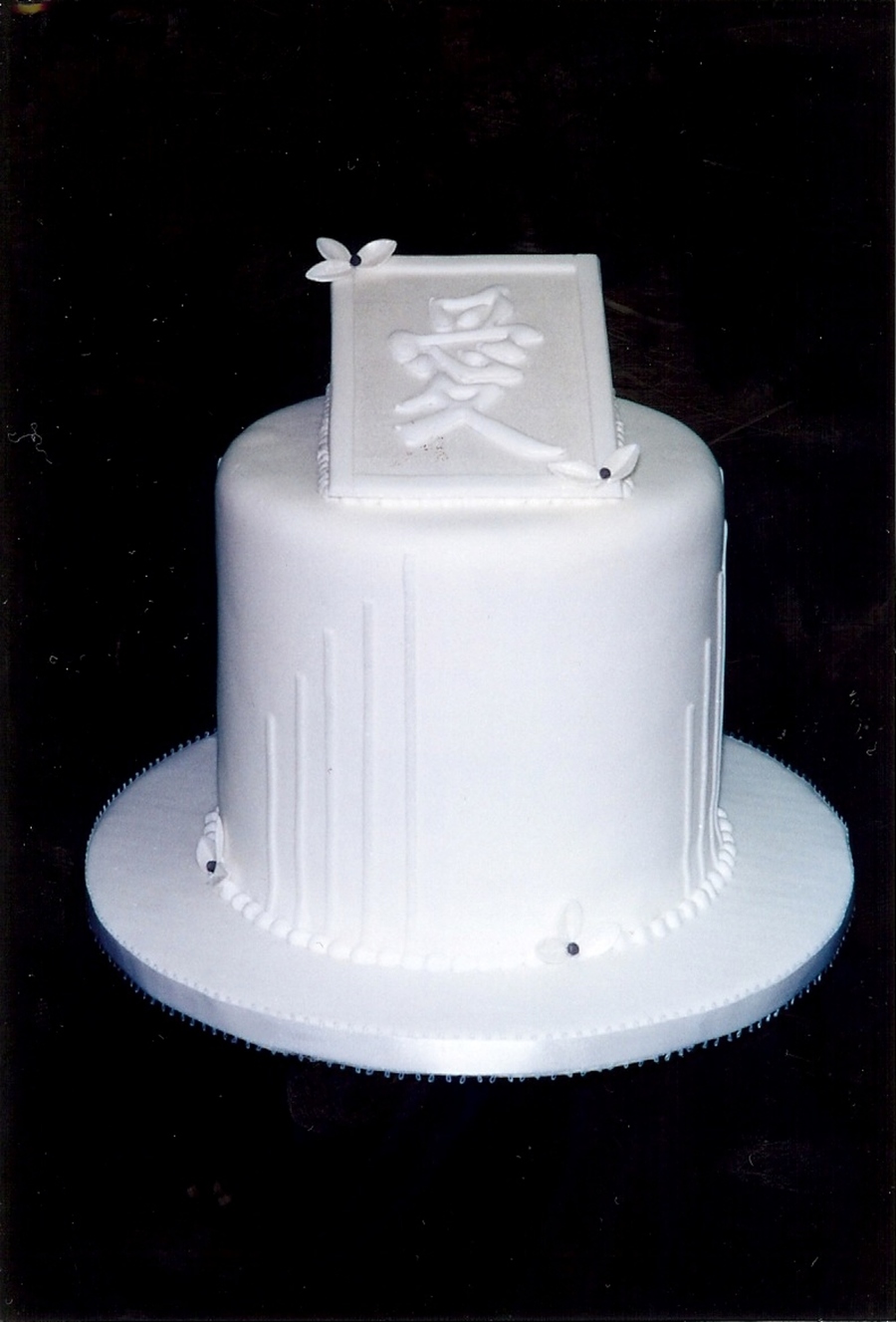 Made for a girl who wanted just a cake to cut at her wedding, with an Asian theme and "I love you" in Japanese.