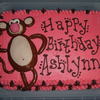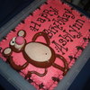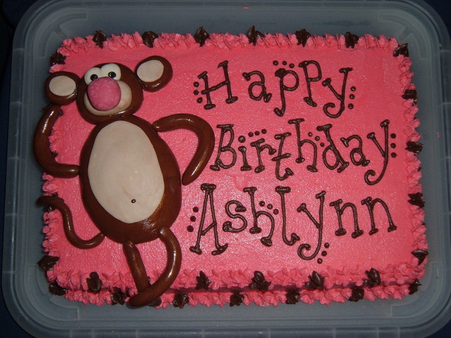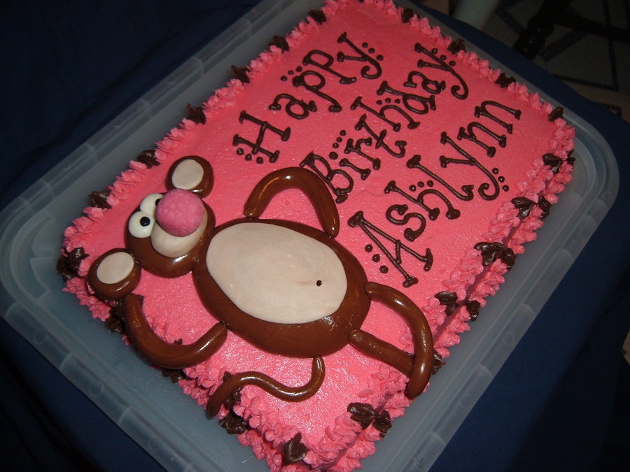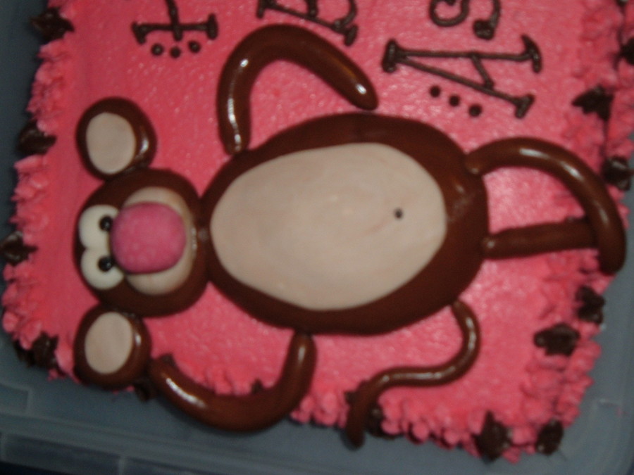 chocolate cake, buttercream and chocolate icing. monkey made from melted tootsie rolls, fondant and bubble gum. thanks to christyscakes for the inspiration!!!